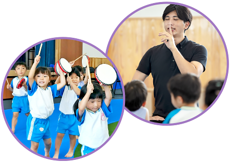 心地良く響く音色、楽しいリズム、日本の伝統文化であり、人の心をゆさぶる魅力いっぱいの和太鼓。和太鼓の指導を通して、豊かな感性を育むとともに、礼儀作法や協調性も身につけます。(3〜5歳)