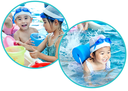 子どもたちの身体機能をバランス良く育むために、近隣のスイミングスクールで行うスイミングを保育に取り入れています。インストラクターによる丁寧な指導で、水に親しみ、泳ぐ力を身につけます。(3〜5歳)