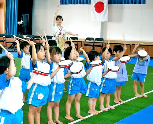 和太鼓などの楽器を使って音やリズムに親しみます。