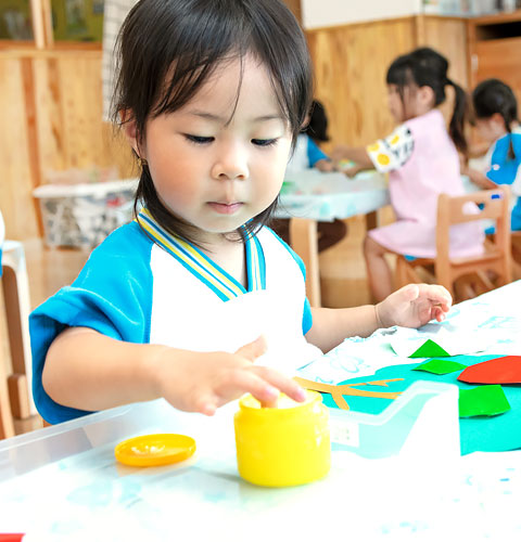 切ったり貼ったり、折り曲げたり、描いたり、色や素材を選んだり、手順を考えたり・・・。製作活動を通して、創意工夫し何かを創る楽しさや、自分の思いを表現する喜びを味わいます。